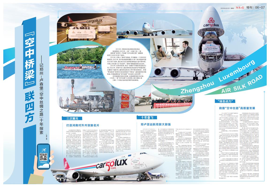 【河南日報(bào)】“空中橋梁”聯(lián)四方———記鄭州-盧森堡“空中絲綢之路”十年探索