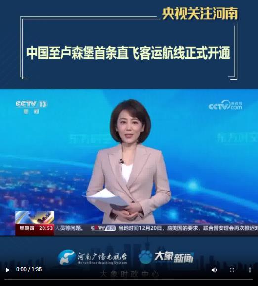 【央視關(guān)注河南】中國(guó)至盧森堡首條直飛客運(yùn)航線正式開通