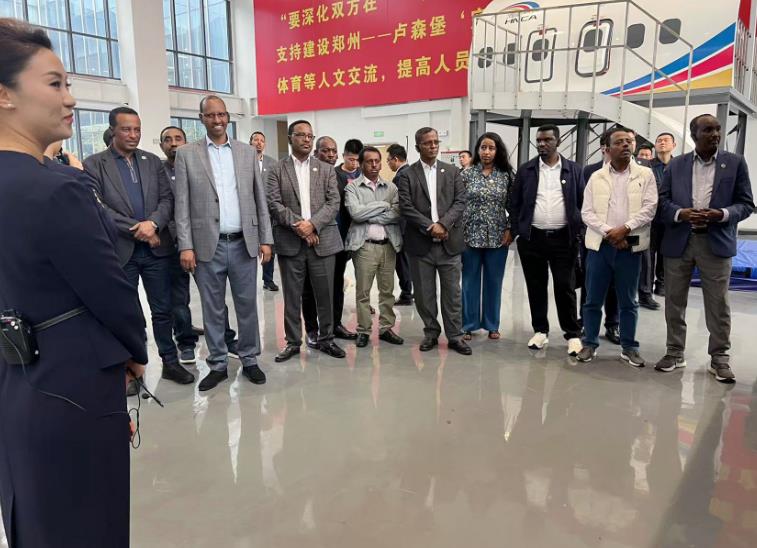 會談前,埃塞俄比亞繁榮黨副主席兼總書記阿登·法拉赫·易卜拉欣(Adem Farah Ibrahim)率領(lǐng)高級干部考察團(tuán)到河南航投航空培訓(xùn)中心參觀??疾靾F(tuán)高度評價鄭盧“空中絲綢之路”建設(shè)成果,對中豫航空集團(tuán)的制造和研發(fā)能力表示肯定,并表達(dá)了對中豫航空集團(tuán)和埃塞俄比亞航空未來合作的信心。