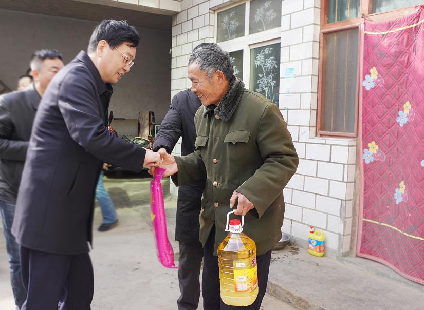 春節(jié)將至,為鞏固脫貧攻堅(jiān)成果,2月1日上午,河南航投黨委書記、董事長(zhǎng)張明超帶隊(duì)前往湯陰縣菜園鎮(zhèn)后皇甫村慰問(wèn),公司黨委副書記、工會(huì)主席安建民,部分中層管理人員及結(jié)對(duì)幫扶人員一同參加。