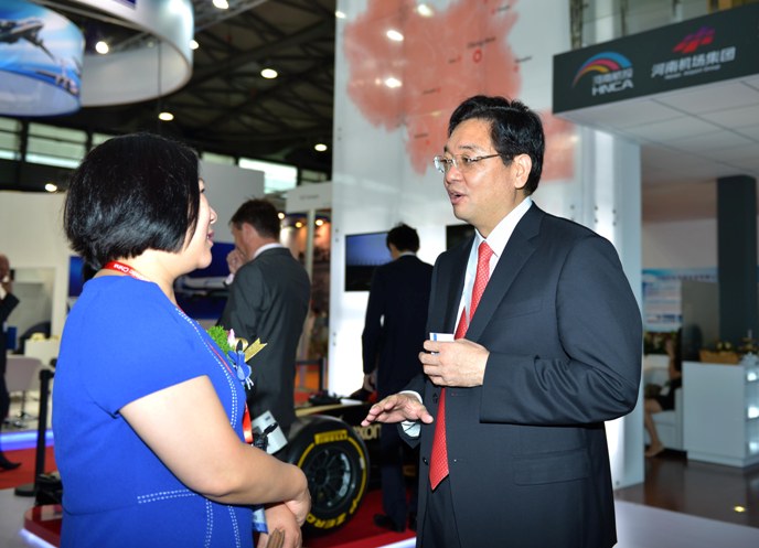After short and solemn opening ceremony, Ms. Birgitta Worringen, the Minister of Urban Development Construction, Transportation and Research Department in Germany, accompanied by many people, walked down from rostrum to the exhibition of HNCA to have a friendly talk with Mr. Zhang Mingchao, the Chairman of HNCA. Ms. Birgitta Worringen said she knew that HNCA had acquired 35% shares of Cargolux. This time, she specially led organizers to attend the exhibition when she heard that HNCA would take part in it. Ms. Birgitta Worringen believes the participation of HNCA reveals a positive signal of developing logistics industry by civil aviation enterprises in Chinese inland province, and she looks forward to seeing more in-depth trade and business cooperation between HNCA and Europe in the future.