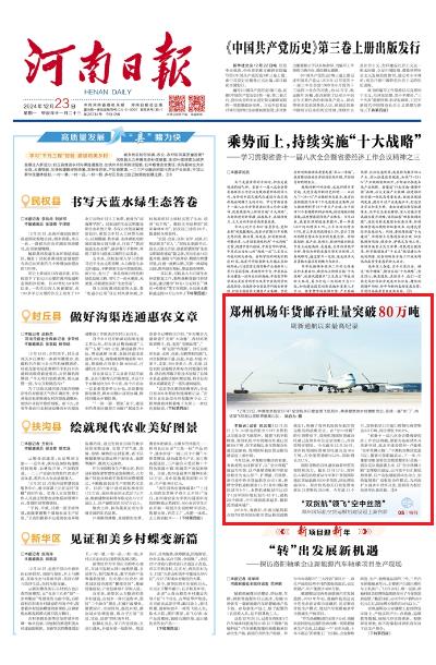 2018年,省政府、中國民航局聯合發(fā)布《鄭州國際航空貨運樞紐戰(zhàn)略規(guī)劃》,明確了鄭州機場國際航空貨運樞紐的戰(zhàn)略定位。在“空中絲路”的引領帶動下,鄭州機場國際貨郵吞吐量已連續(xù)多年位居全國第五,外向型特征明顯。今年截至12月20日,鄭州機場國際貨郵吞吐量完成45.6萬噸,占全部貨量的57.2%,同比增長22.1%。