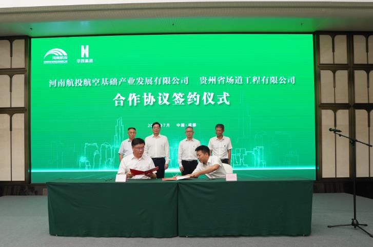 7月16日,河南民航發(fā)展投資有限公司(簡(jiǎn)稱河南航投)與四川華西集團(tuán)有限公司(簡(jiǎn)稱四川華西)在成都舉行了簡(jiǎn)短而熱烈的簽約儀式,兩家跨省國(guó)企約定,在民航產(chǎn)業(yè)展開(kāi)全面合作。河南航投黨委書記、董事長(zhǎng)張明超,黨委副書記、總經(jīng)理、副董事長(zhǎng)劉建葆,四川華西黨委書記、董事長(zhǎng)楊斌,黨委副書記、總經(jīng)理、副董事長(zhǎng)馬林出席。張明超、楊斌分別致辭,劉建葆、馬林代表雙方簽訂《戰(zhàn)略合作協(xié)議》,河南航投基礎(chǔ)產(chǎn)業(yè)公司董事長(zhǎng)趙楠和貴州場(chǎng)道公司執(zhí)行董事劉國(guó)呈代表子公司簽訂《合資合作協(xié)議》。