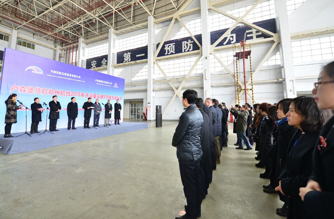 當(dāng)天中午,河南民航發(fā)展投資有限公司與盧貨航聯(lián)合在鄭州機(jī)場舉行了簡短熱烈的慶祝儀式。河南省副省長趙建才出席儀式并致辭,盧森堡駐華大使石泰嵋宣讀盧森堡可持續(xù)發(fā)展與基礎(chǔ)產(chǎn)業(yè)部部長弗朗索瓦?鮑施的賀信,省政府副秘書長張雷明主持儀式。省直單位有關(guān)負(fù)責(zé)人親臨現(xiàn)場。河南航投董事長、黨委書記張明超,總經(jīng)理、副董事長、黨委副書記劉建葆,公司領(lǐng)導(dǎo)悅國勇、鄭立亮、郭艷紅以及盧貨航董事會主席保羅?海明格、盧貨航總裁兼CEO德克?李奇同時參加儀式。